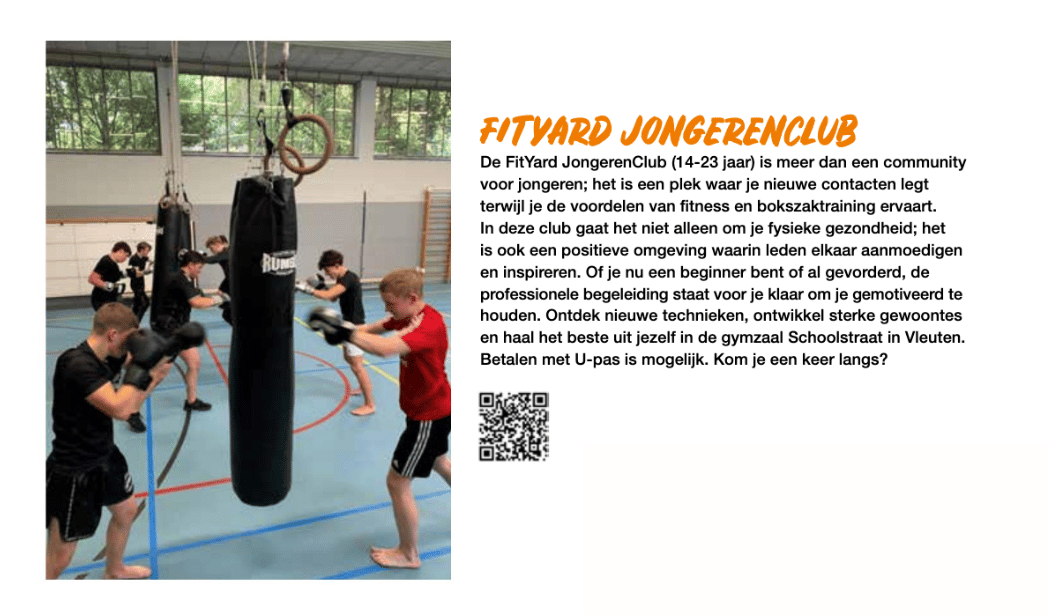 Ben jij tussen de 14 en 23 jaar en wil jij werken aan je weerbaarheid en zelfvertrouwen en tegelijk ook vrienden maken? Bij FitYard leren we je op een verantwoorde manier met kickboks technieken hieraan te werken.